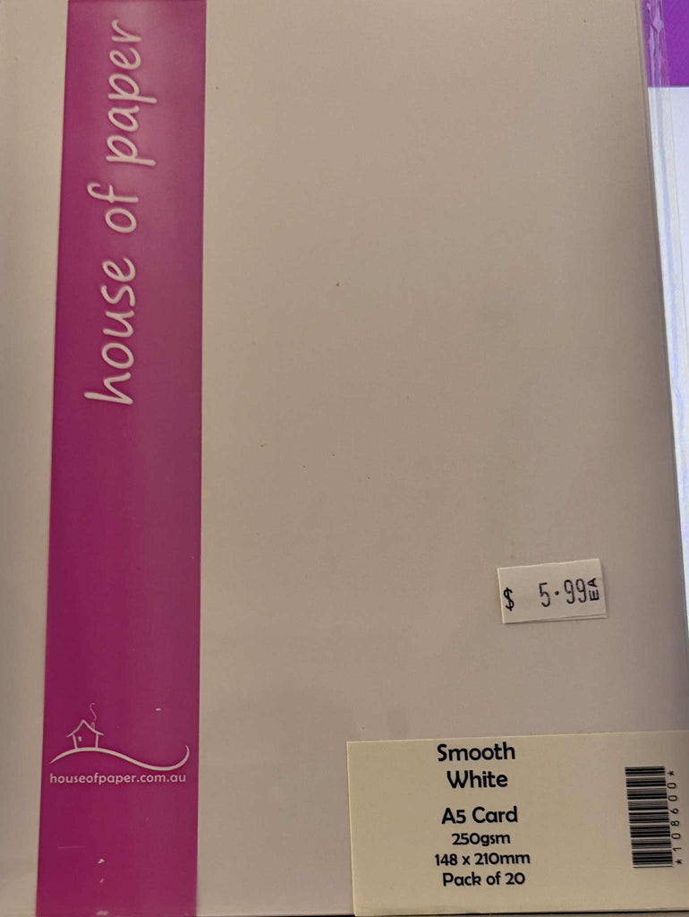 House of Paper - A5 Smooth White Cardstock 250gsm - 20Pkg